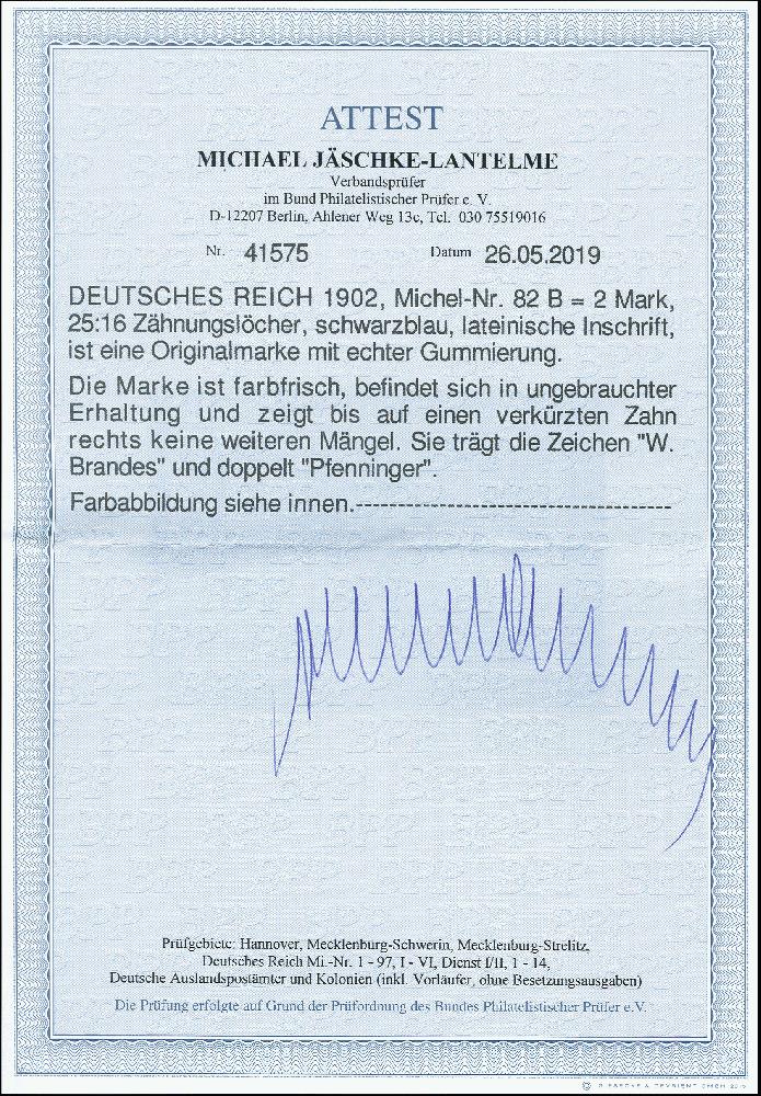| Prüfgebiet: | Deutsches Reich 1871 - 1918 (Mi-Nr. 1 - 106) |