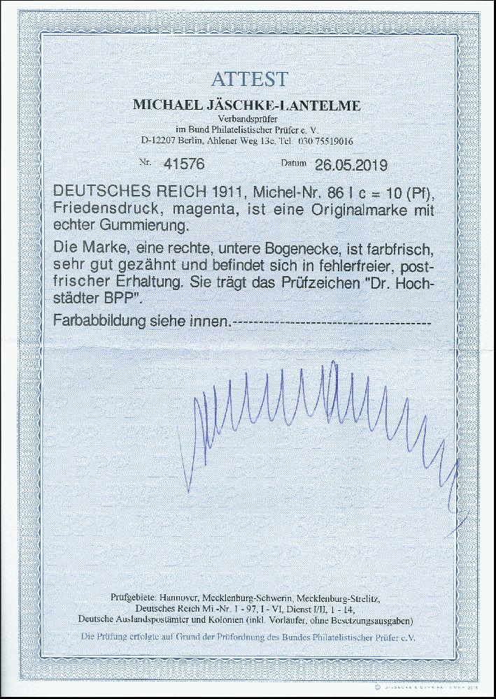 | Prüfer: | Jäschke-Lantelme, Michael (BPP (Bund Philatelistischer Prüfer)) |