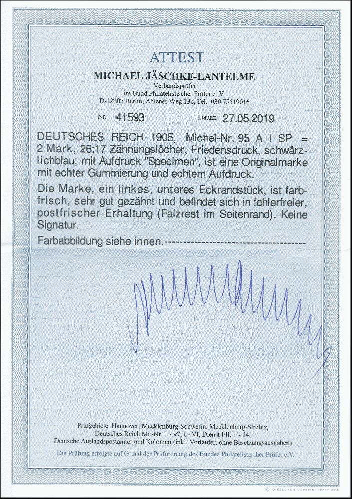 | Prüfgebiet: | Deutsches Reich Specimen, Probedrucke, Essay, Maschinenprobe |