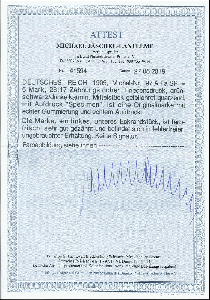 | Prüfgebiet: | Deutsches Reich Specimen, Probedrucke, Essay, Maschinenprobe |