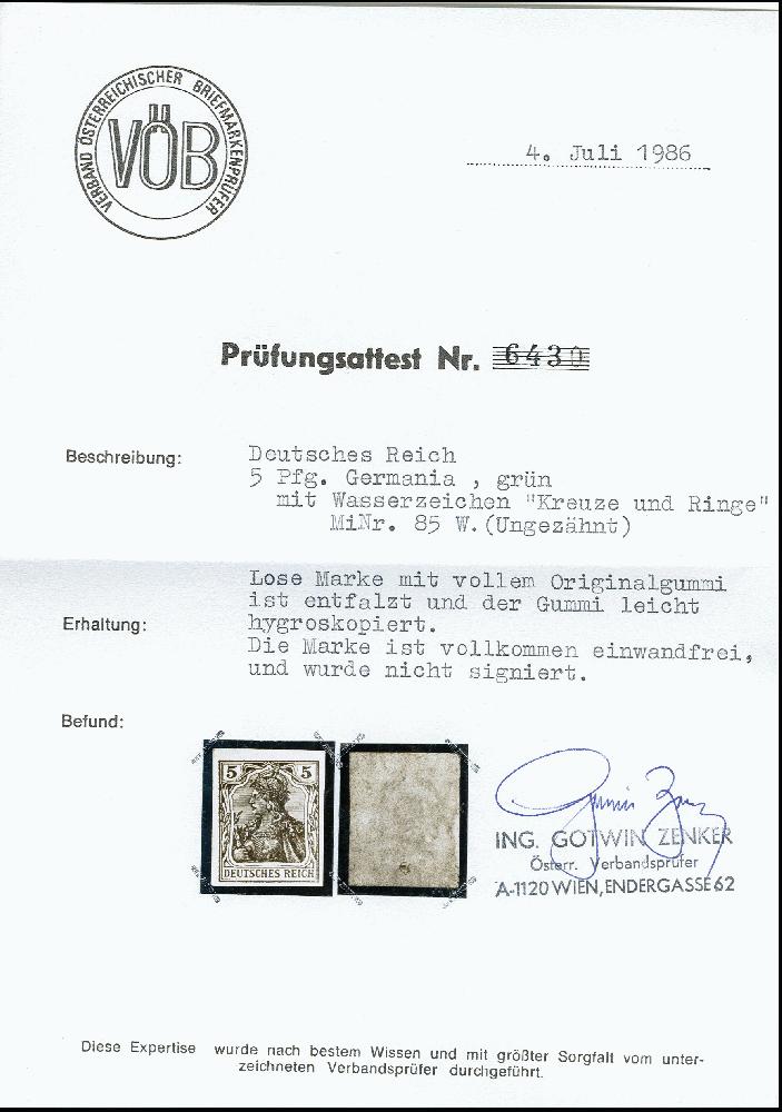 | Prüfgebiet: | Deutsches Reich 1871 - 1918 (Mi-Nr. 1 - 106) |
