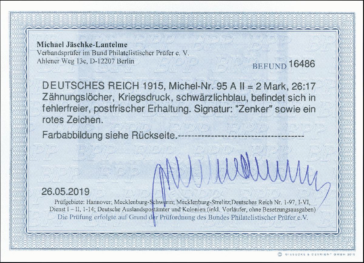 | Prüfer: | Jäschke-Lantelme, Michael (BPP (Bund Philatelistischer Prüfer)) |