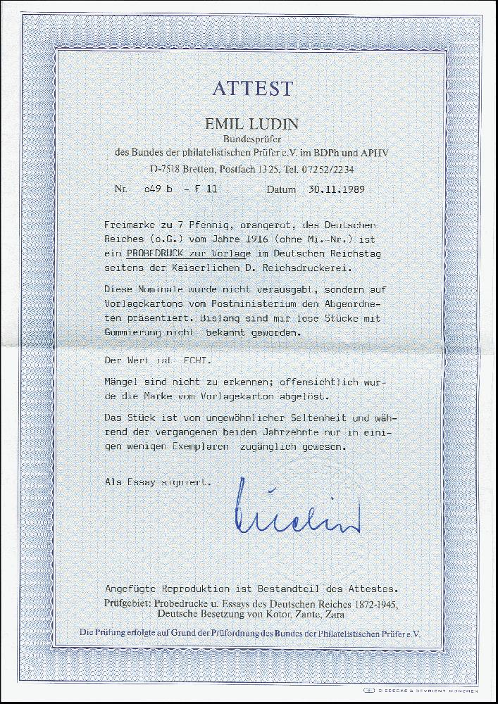 | Prüfgebiet: | Deutsches Reich Specimen, Probedrucke, Essay, Maschinenprobe |