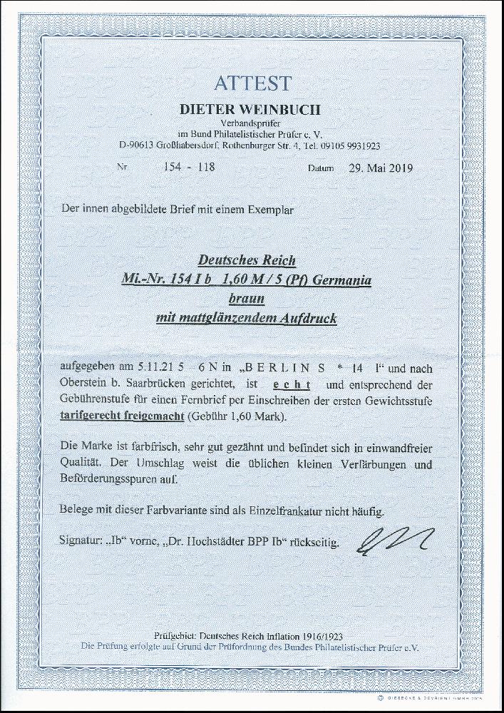 | Prüfer: | Weinbuch, Dieter (BPP (Bund Philatelistischer Prüfer)) |