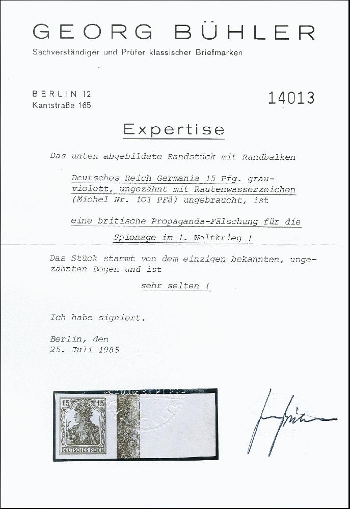 | Prüfgebiet: | Deutsches Reich Kriegs- und Propagandafälschungen 1914-1918 |