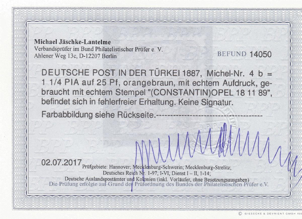 | Prüfgebiet: | Deutsche Auslandspostämter Türkei |