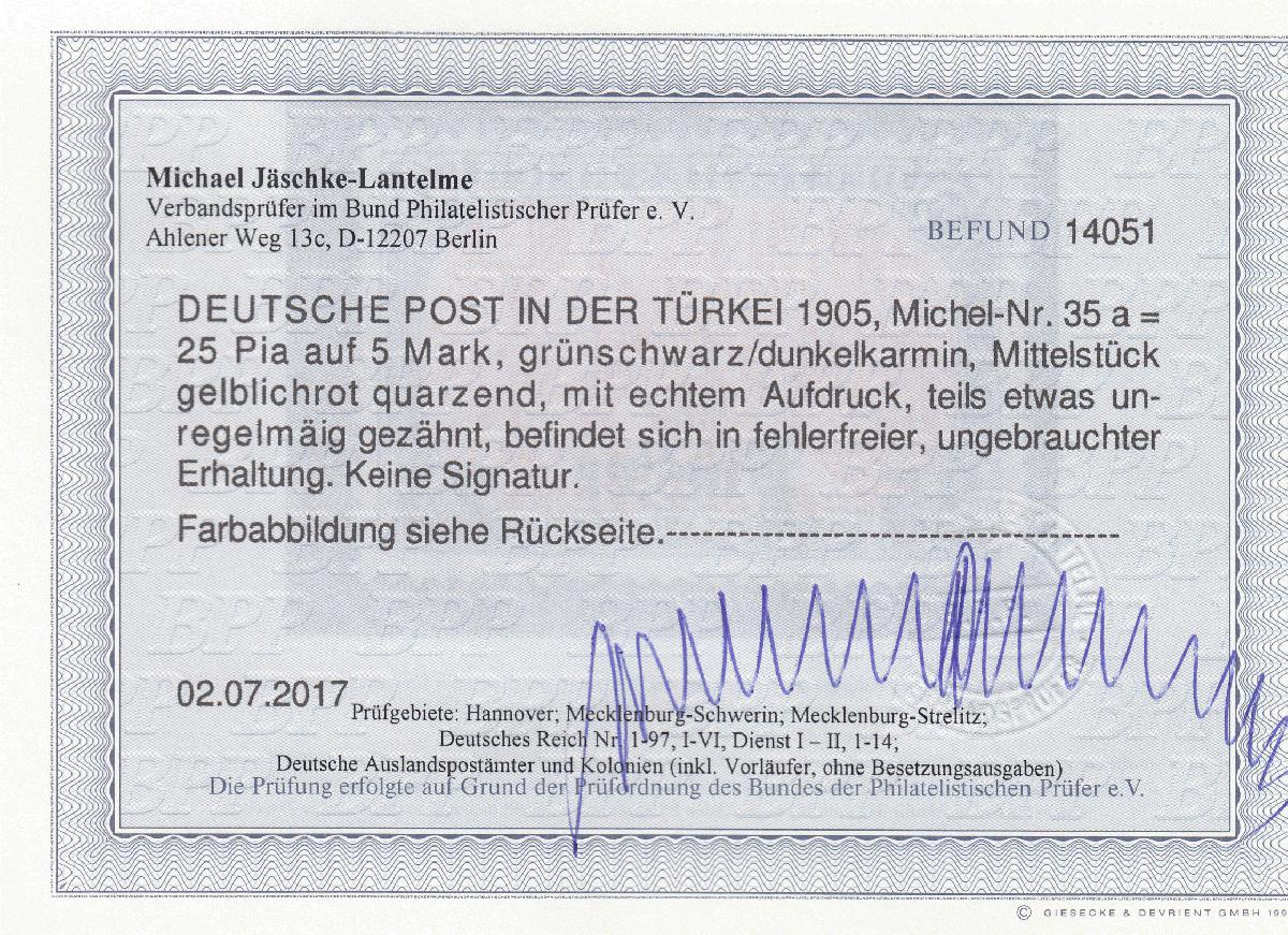 | Prüfgebiet: | Deutsche Auslandspostämter Türkei |