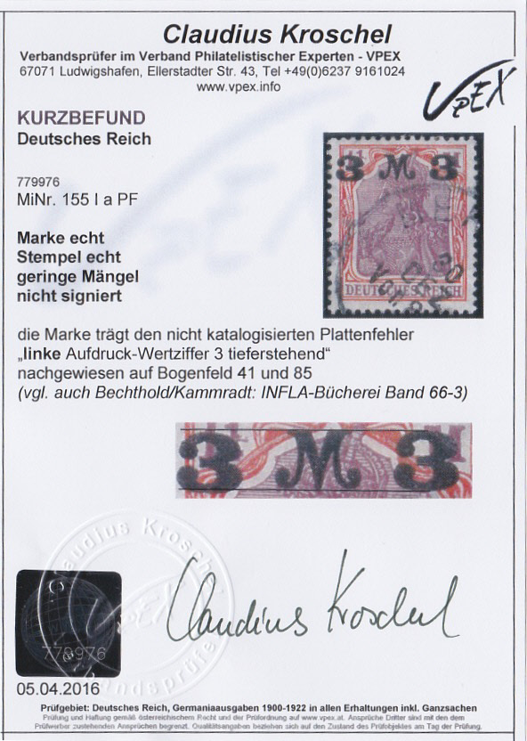 | Prüfer: | Kroschel, Claudius (VPEX (Verband Philatelistischer Experten)) |