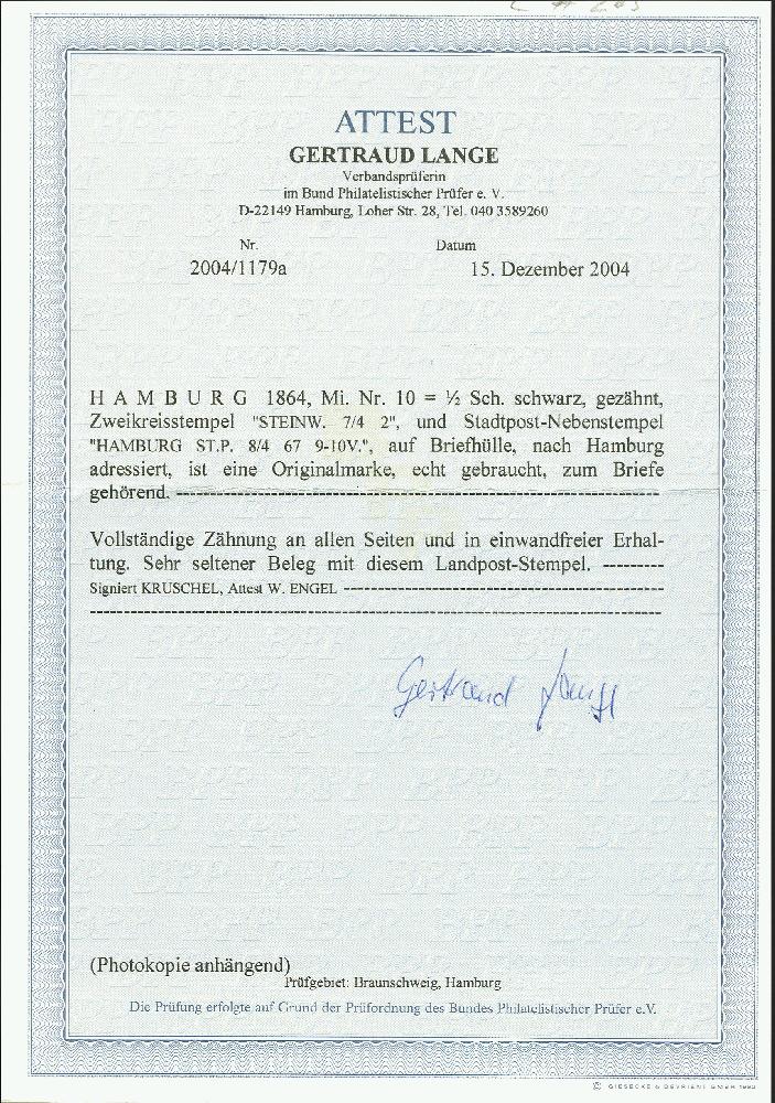 | Prüfgebiet: | Altdeutschland Hamburg |