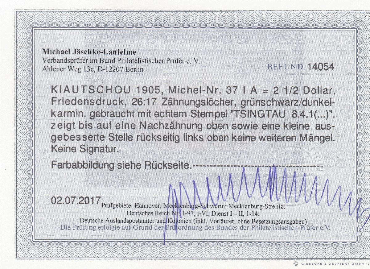 | Prüfer: | Jäschke-Lantelme, Michael (BPP (Bund Philatelistischer Prüfer)) |