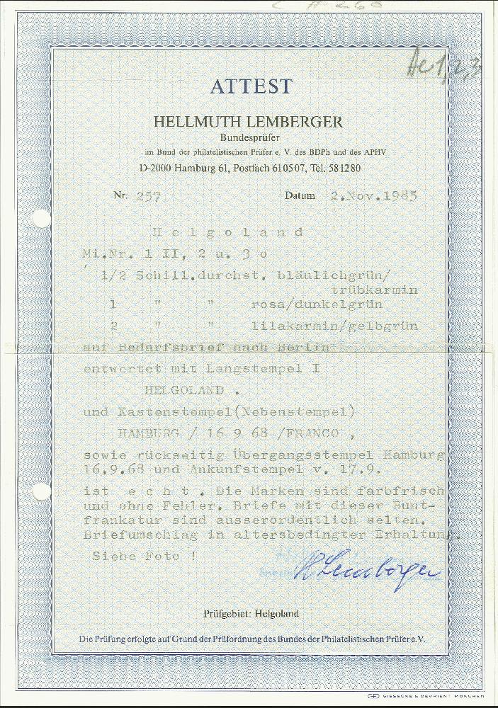 | Prüfgebiet: | Altdeutschland Helgoland |