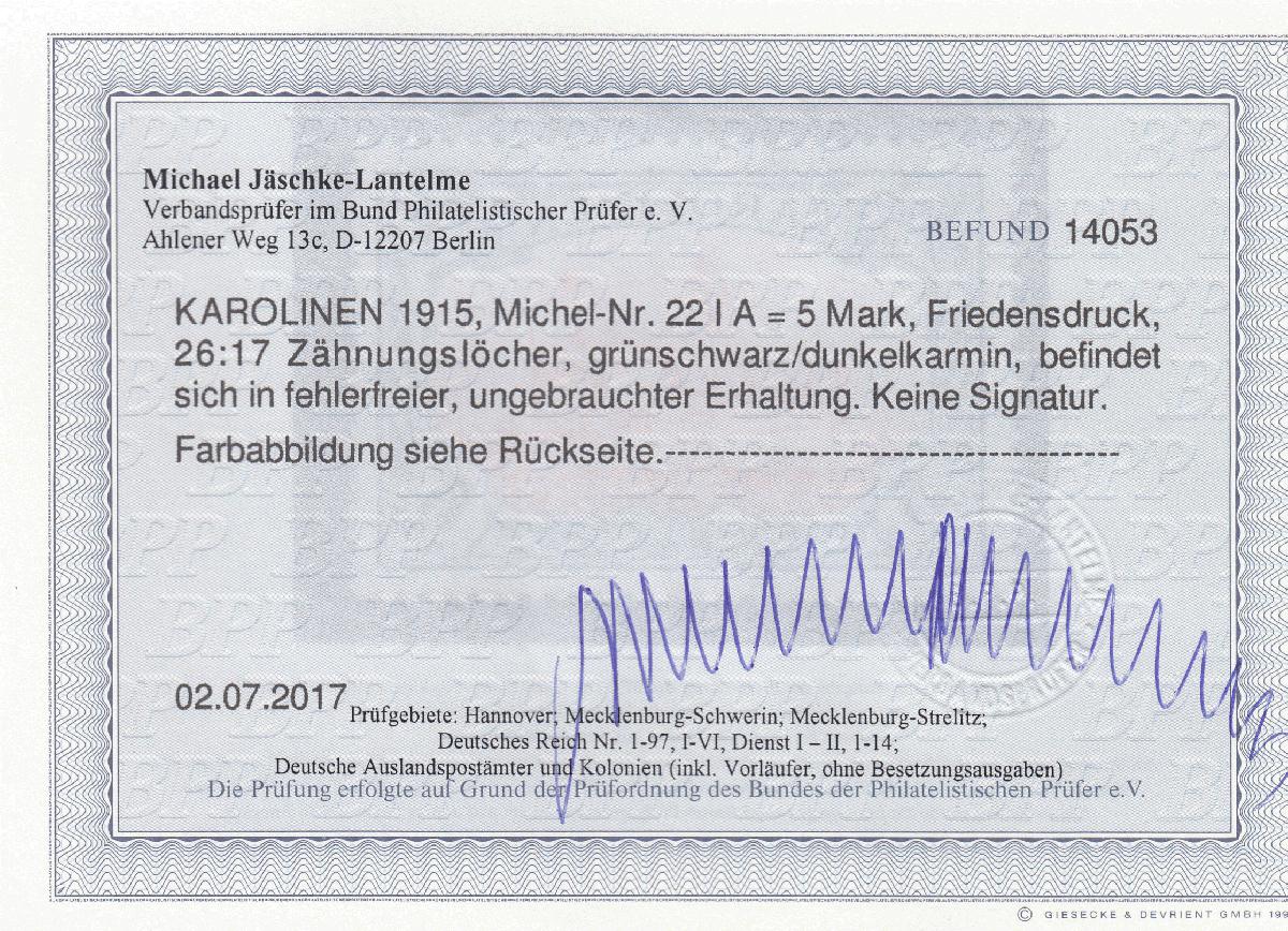| Prüfgebiet: | Deutsche Kolonien Karolinen |