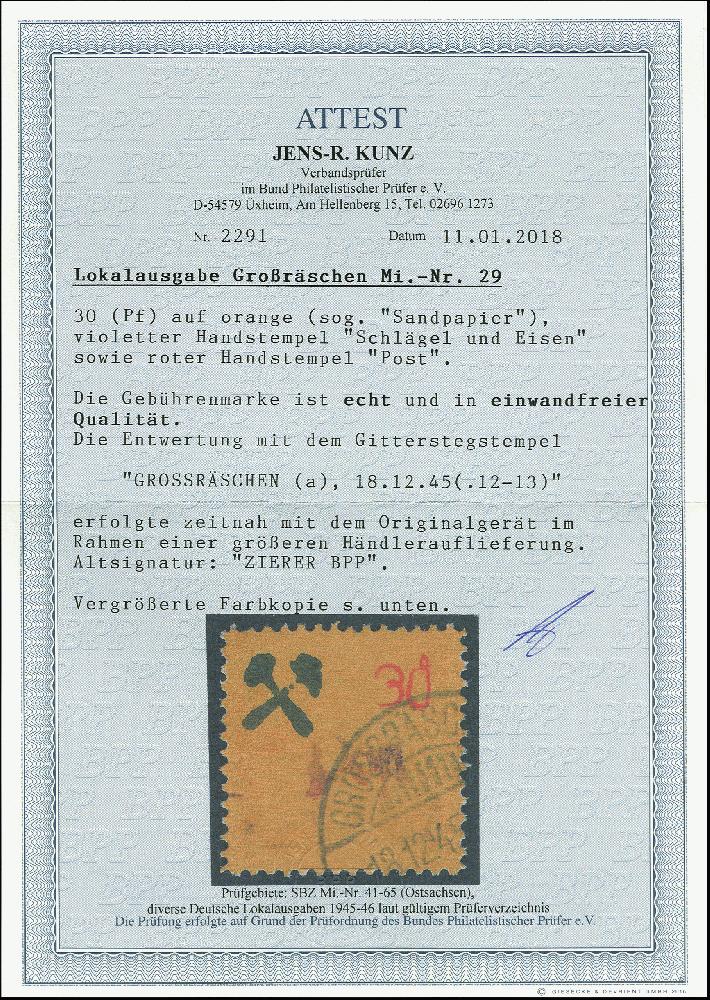 | Prüfgebiet: | Deutsche Lokalausgaben 1945 Großräschen |
