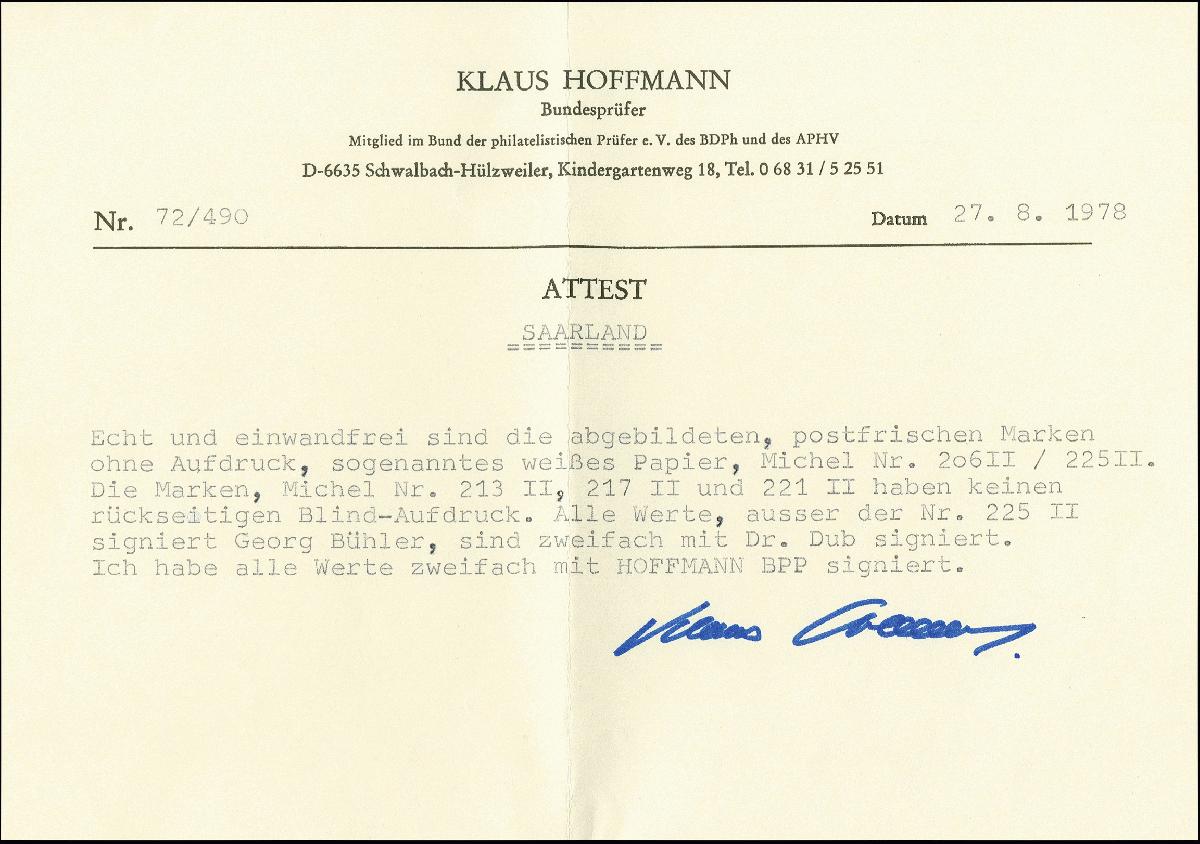 | Prüfgebiet: | Saarland (ab Mi-Nr. 206) |