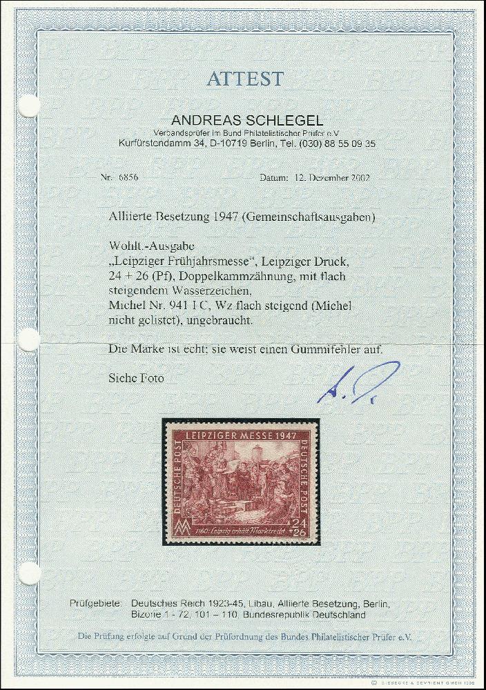 | Prüfer: | Schlegel, Andreas (BPP (Bund Philatelistischer Prüfer)) |