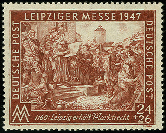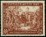 | Zusatzinformationen und Suchstichworte: | 366. Auktion Heinrich Köhler Auktionstermin 19.–24.03.2018 Los 2321 1947, Leipziger Frühjahrsmesse 24 Pfg. gezähnt K13¼ mit Wz. "Stufen flach steigend", ungebraucht mit nur minimalem Gummifehler (kein Falz), unsigniert, Fotoattest A. Schlegel BPP (2002, gelocht) Zuschlag 160,00 EUR |