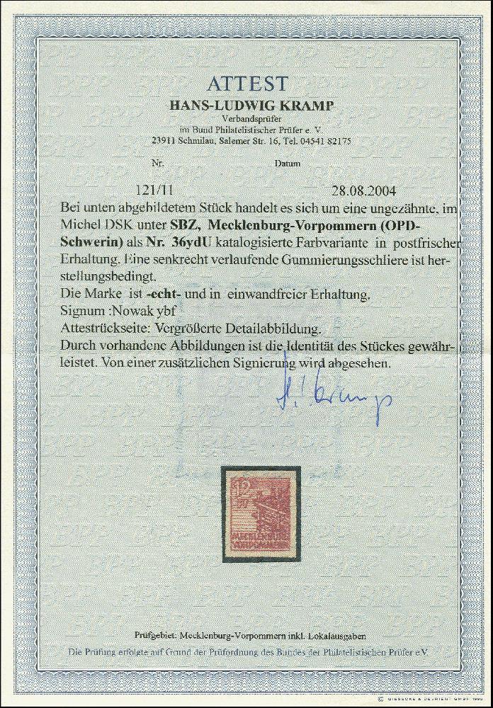 | Prüfgebiet: | Alliierte Besetzung SBZ Mecklenburg-Vorpommern |