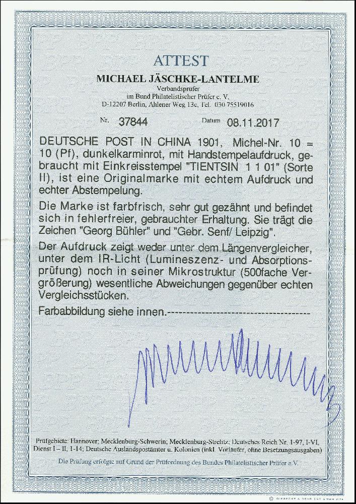| Prüfgebiet: | Deutsche Auslandspostämter China |