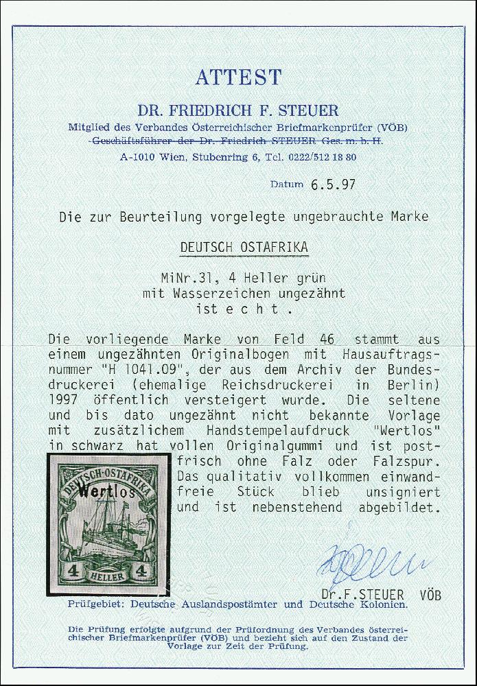| Prüfer: | Steuer, Friedrich F. (VÖB (Verband Österreichischer Briefmarkenprüfer)) |