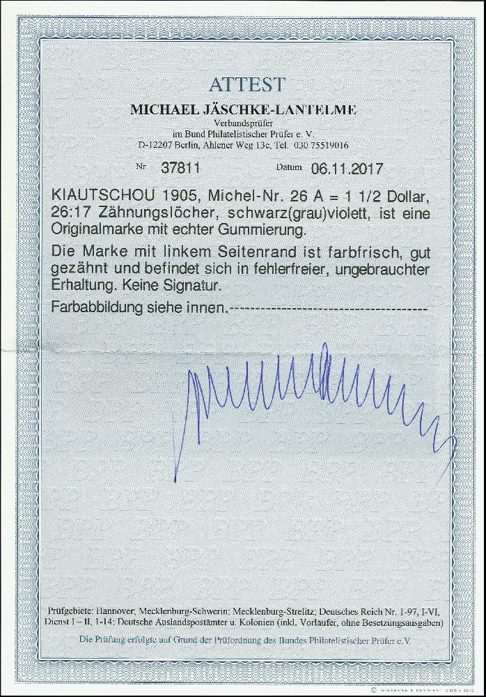 | Prüfer: | Jäschke-Lantelme, Michael (BPP (Bund Philatelistischer Prüfer)) |