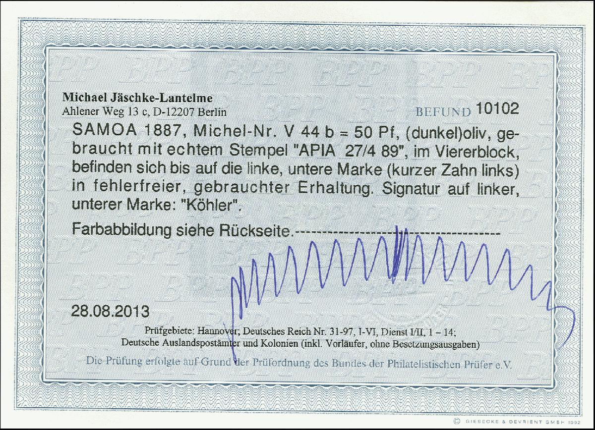 | Prüfgebiet: | Deutsche Kolonien Samoa |
