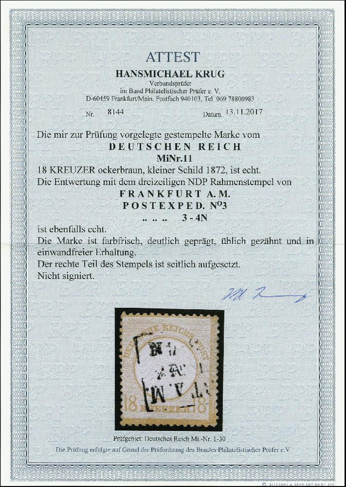 | Prüfgebiet: | Deutsches Reich 1871 - 1918 (Mi-Nr. 1 - 106) |