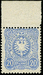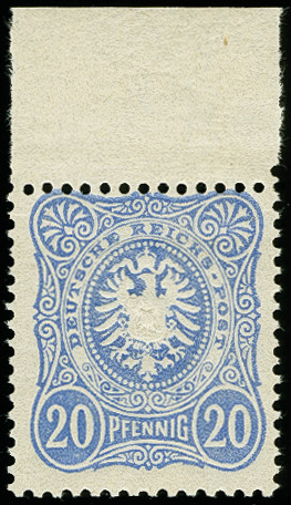 | Zusatzinformationen und Suchstichworte: | 366. Auktion Heinrich Köhler Auktionstermin 19.-24.03.2018 Los 1462 20 Pfg. mittelultramarin, Oberrandstück, farbfrisch und gut gezähnt, postfrisch, tadellos, Fotobefund Wiegand BPP (2015) Zuschlag 170,00 EUR |