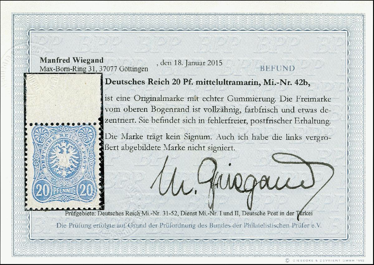 | Prüfer: | Wiegand, Manfred (BPP (Bund Philatelistischer Prüfer)) |