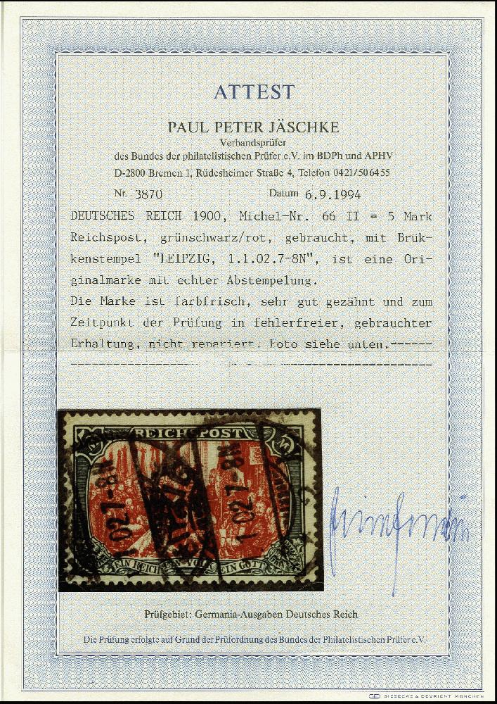 | Prüfer: | Jäschke, Paul Peter (BPP (Bund Philatelistischer Prüfer)) |