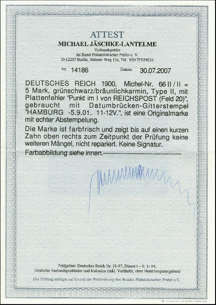 | Prüfgebiet: | Deutsches Reich 1871 - 1918 (Mi-Nr. 1 - 106) |