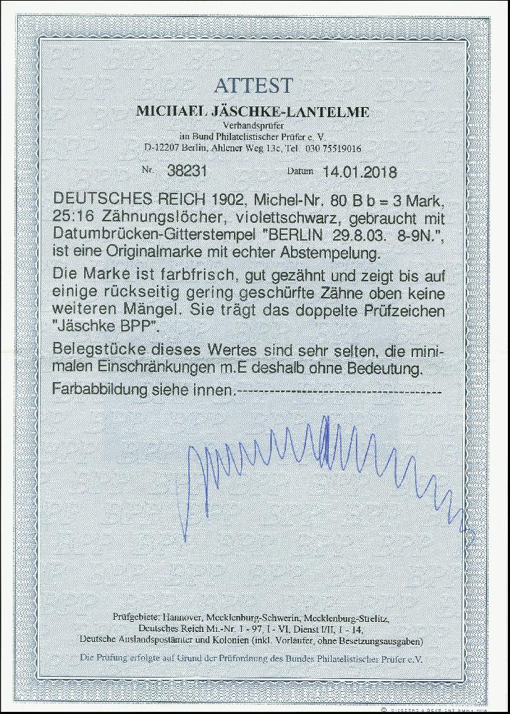 | Prüfer: | Jäschke-Lantelme, Michael (BPP (Bund Philatelistischer Prüfer)) |