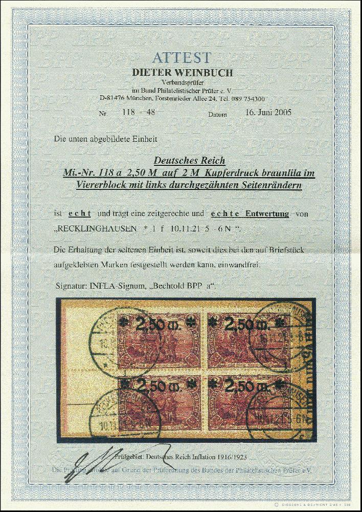 | Prüfer: | Weinbuch, Dieter (BPP (Bund Philatelistischer Prüfer)) |