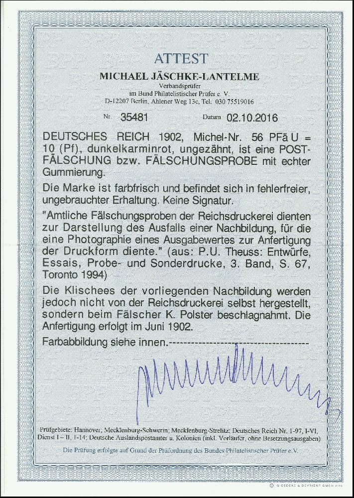 | Prüfgebiet: | Deutsches Reich 1871 - 1918 (Mi-Nr. 1 - 106) |