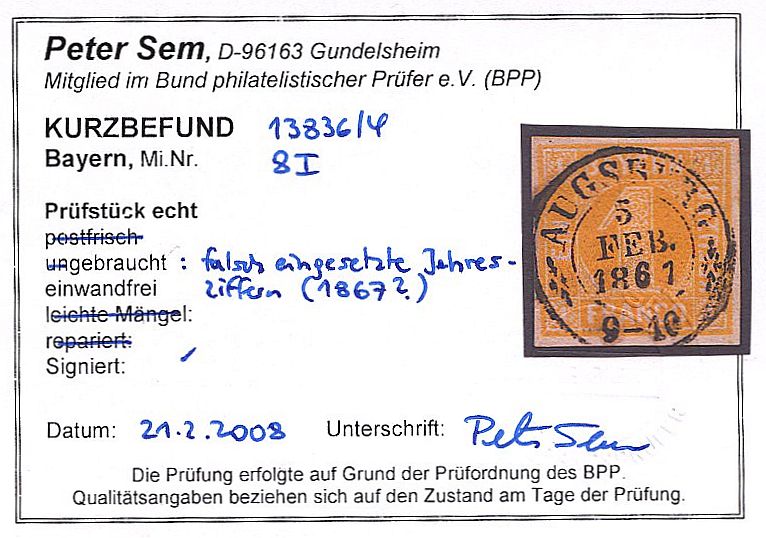 | Prüfer: | Sem, Peter (BPP (Bund Philatelistischer Prüfer)) |