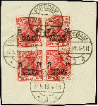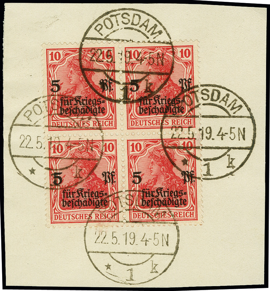 | Zusatzinformationen und Suchstichworte: | 366. Auktion Heinrich Köhler Auktionstermin 19.-24.03.2018 Los 1654 1919, Kriegsbeschädigtenhilfe 5 Pfg. karminrot, Viererblock auf Kabinett-Briefstück, Fotoattest Weinbuch BPP (2002) Ausruf 100,00 EUR |