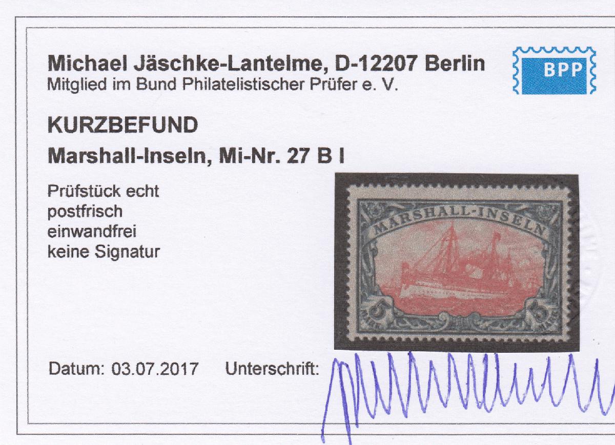 | Prüfer: | Jäschke-Lantelme, Michael (BPP (Bund Philatelistischer Prüfer)) |