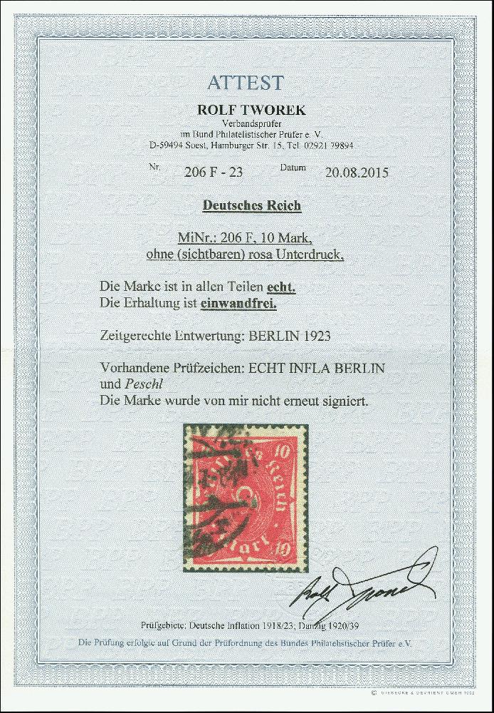 | Prüfgebiet: | Deutsches Reich 1919 - 1923 (Mi-Nr. 107 - 343) |