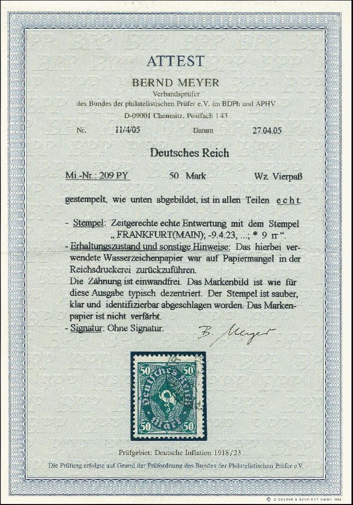 | Prüfer: | Meyer, Bernd (BPP (Bund Philatelistischer Prüfer)) |