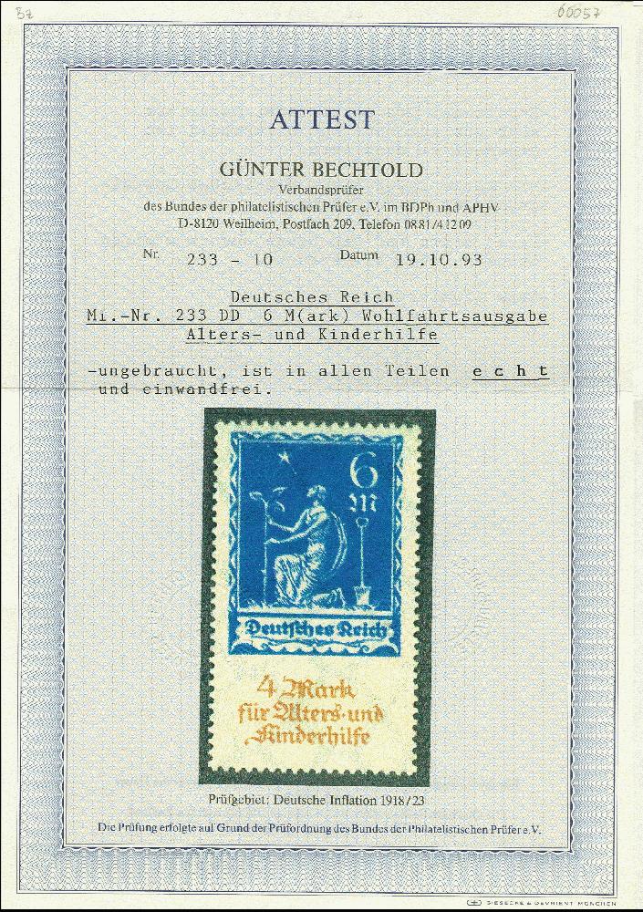 | Prüfgebiet: | Deutsches Reich 1919 - 1923 (Mi-Nr. 107 - 343) |