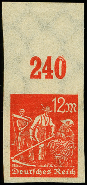 | Zusatzinformationen und Suchstichworte: | 366. Auktion Heinrich Köhler Auktionstermin 19.-24.03.2018 Los 1688 Schnitter 12 M. ungezähnt, Oberrandstück, postfrisch mit Fingerspuren und entfernter Falz im Oberrand, sonst tadellos, Fotobefund Weinbuch BPP (2015) (Mi. 320,-) Zuschlag 75,00 EUR |