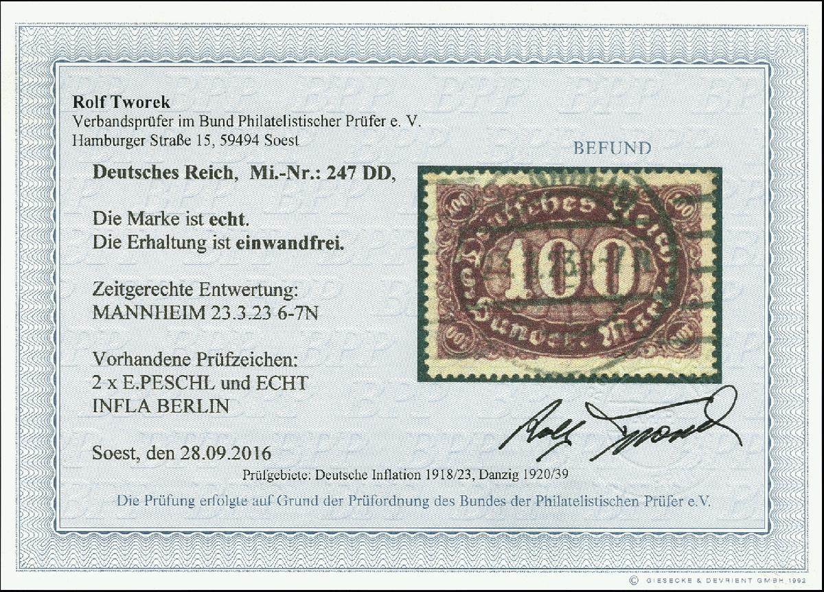 | Prüfgebiet: | Deutsches Reich 1919 - 1923 (Mi-Nr. 107 - 343) |