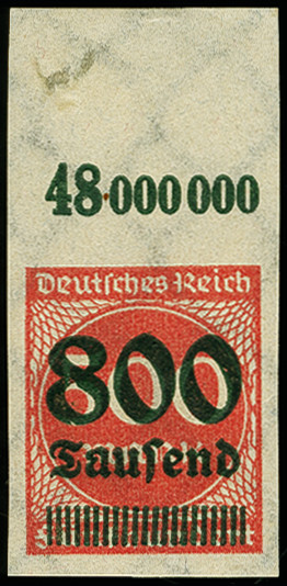 | Zusatzinformationen und Suchstichworte: | 366. Auktion Heinrich Köhler Auktionstermin 19.-24.03.2018 Los 1699 Probedruck 800 Tausend auf 500 M. rot ungezähnt, Oberrandstück, postfrisch, im Oberrand mit braunem Fleck, ansonsten tadellos, sign. Bühler und Fotoatteste Bechtold BPP (1991) und Tworek BPP (2015) Ausruf 250,00 EUR |