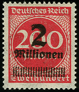 | Prüfgebiet: | Deutsches Reich 1919 - 1923 (Mi-Nr. 107 - 343) |