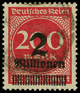 | Prüfgebiet: | Deutsches Reich 1919 - 1923 (Mi-Nr. 107 - 343) |