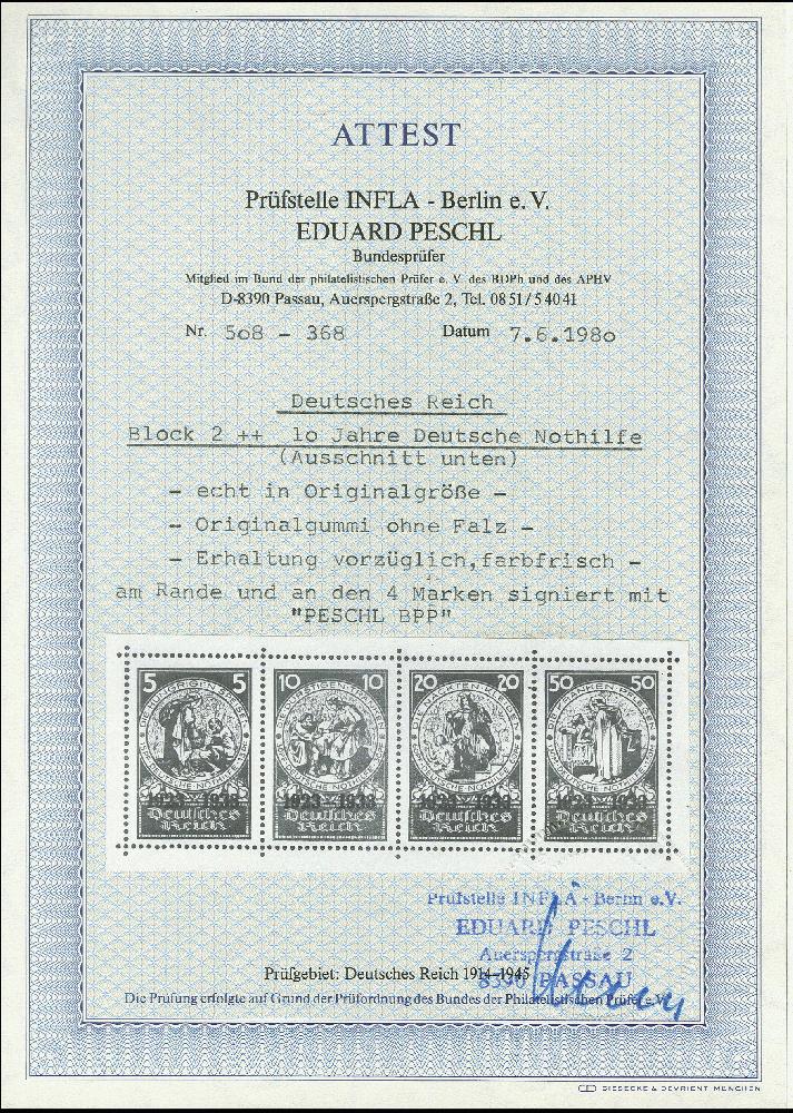 | Zusatzinformationen und Suchstichworte: | 366. Auktion Heinrich Köhler Auktionstermin 19.-24.03.2018 Los 1728 Nothilfe-Block, postfrisch, tadellos, Fotoattest D. Schlegel BPP (2017) (Mi. 6.000,-) Zuschlag 2.100,00 EUR |