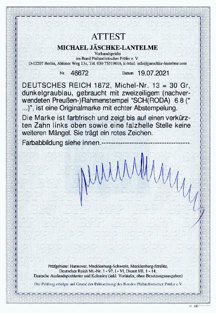 | Prüfgebiet: | Deutsches Reich 1871 - 1918 (Mi-Nr. 1 - 106) |