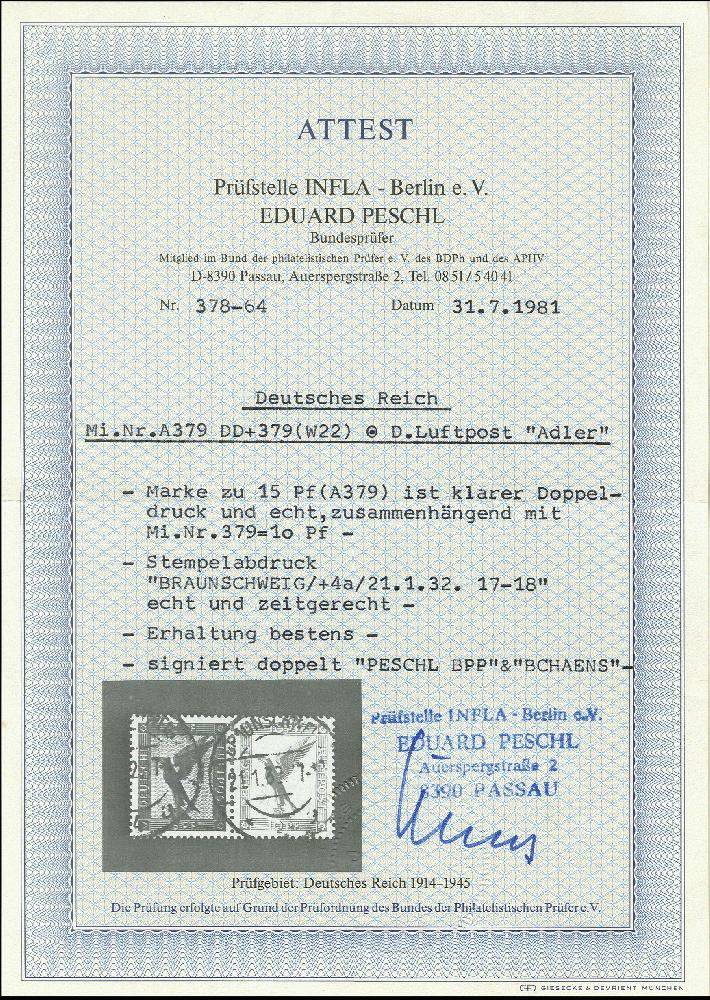 | Prüfer: | Peschl, Eduard (BPP (Bund Philatelistischer Prüfer)) |