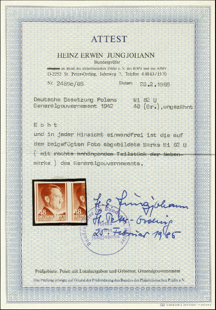 | Prüfer: | Jungjohann, Heinz Erwin (BPP (Bund Philatelistischer Prüfer)) |