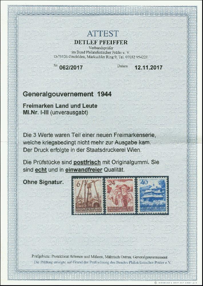 | Zusatzinformationen und Suchstichworte: | 366. Auktion Heinrich Köhler Auktionstermin 19.-24.03.2018 Los 2088 1944, unverausgabte 6-40 Gr. kpl., postfrisch, tadellos, Fotoattest Pfeiffer BPP (2017) Ausruf 400,00 EUR |