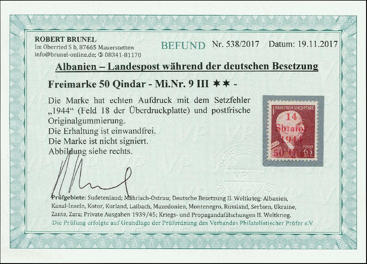 | Prüfgebiet: | Deutsche Besetzung WK 2 Albanien Landespost |